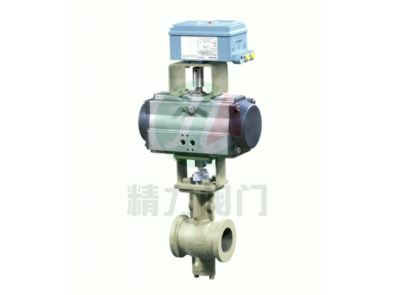 气动V型调节球阀适用于工作温度≤200℃的各种管路上,用于调节管路中介质的压力及流量。选用不同的材质,可分别适用于水、蒸汽、油品、硝酸、醋酸、氧化性介质、尿素等多种介质。由于阀芯和阀座之间是无间隙回转,所以具有很大的剪切力及自洁性能,尤其适用于含有纤维性或有微小固体颗粒的悬浊液及固态颗粒状的控制。因此本产品可广泛用于石油、化工、造纸、电力、冶金、制药、环保等工业部门的自控系统。