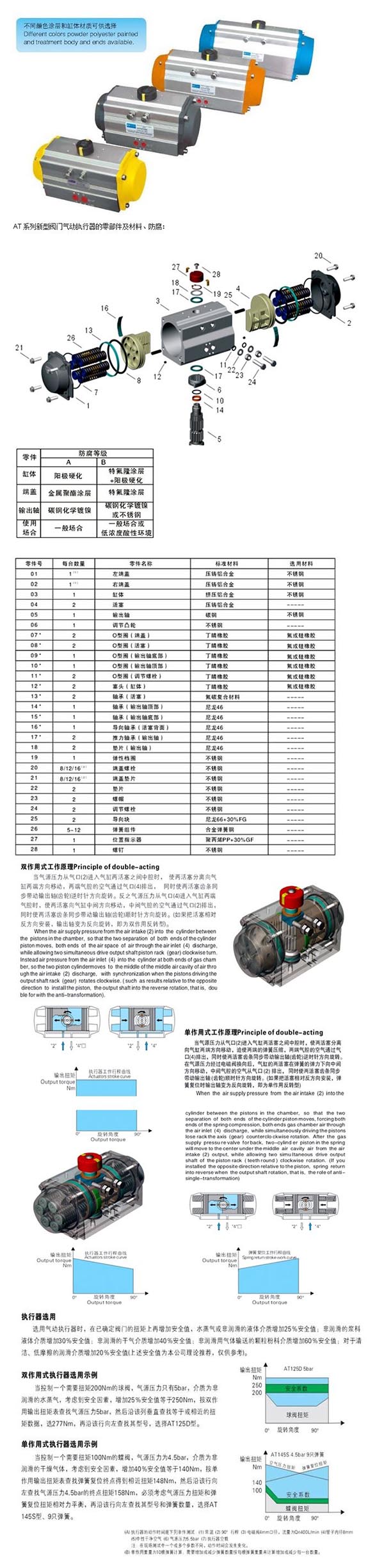 ⑤外部侧面两个单独调节螺钉对于已安装在阀门上的执行器更是精确方便,调节阀开和阀关位置,如需全行程调节时则另外在两个端盖处配置较长调节螺钉。