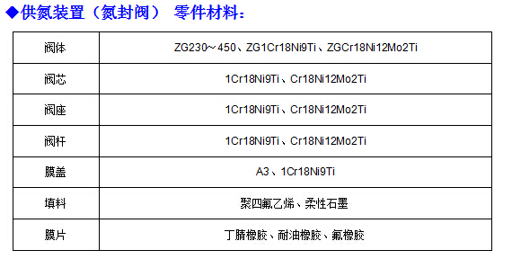 氮封装置(氮封阀)的供(泄)氮压力设定方便,可在连续生产的条件下进行。在设定压力范围内,如从100mm H20需调整到50mm H20,可通过调节供氮阀顶部的调节螺丝,改变弹簧的力,即可达到需要新设定的工艺值。泄氮阀的调整也是同理。呼吸阀设定值调整:在上述设定值调整好后,为避免呼吸阀启闭频繁,呼吸阀的设定值应大于泄压设定置。